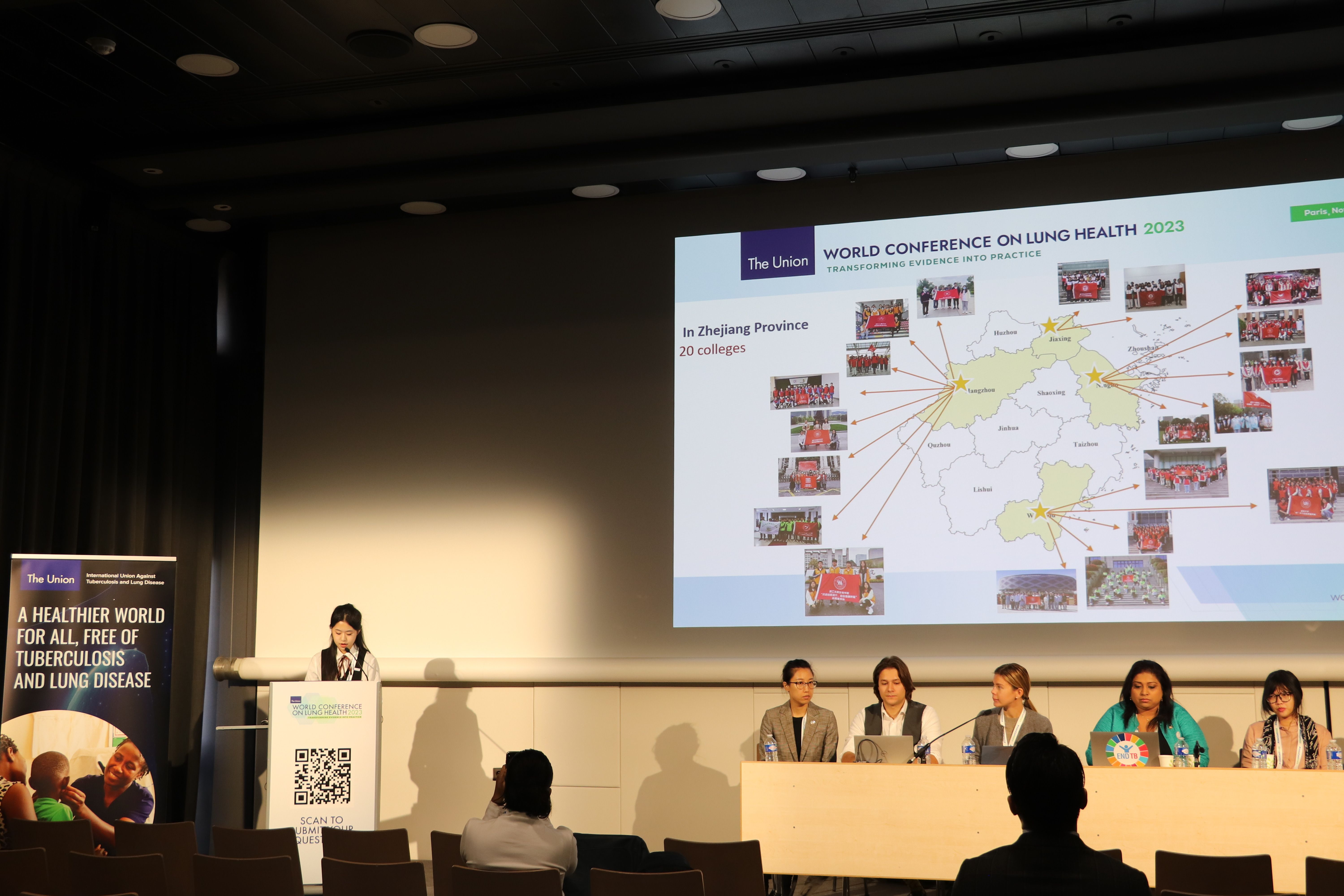 中国青年网宁波11月22日电(通讯员 卢帆) 法国巴黎时间11月17日上午,浙大宁波理工学院英语213班郑若楠同学受国家疾控中心委派,作为中国结核病防治志愿者代表赴法国巴黎参加第54届全球肺部健康大会(The Union World Conference on Lung Health)做题为《A critical role of young volunteers in knowledge sharing in TB prevention and control: Case study from China—Shoulder to shoulder:youth ignites the path to a TB-free future with a flicker of resilience》专题报告,并与与会人员进行交流,向全球分享中国青年志愿者在推进实现世界卫生组织终结结核病流行目标中的引领和带动作用。